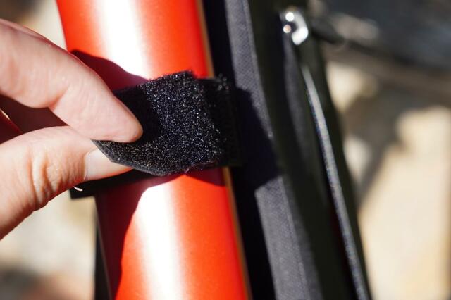 マジックテープをフレーム形状にあわせて組み替えることができ、固定するのも簡単でした。ただ、自転車のフレームサイズに合うかどうかは買う前に確認したほうがいいでしょう。