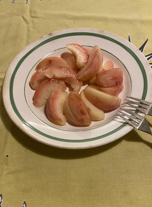 デザートは小さな桃。期待していなかったのに、とっても美味しい。