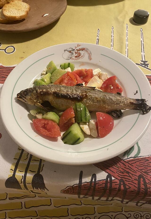 あゆも買ってきて焼きました。きゅうりとトマトのサラダがお供です。