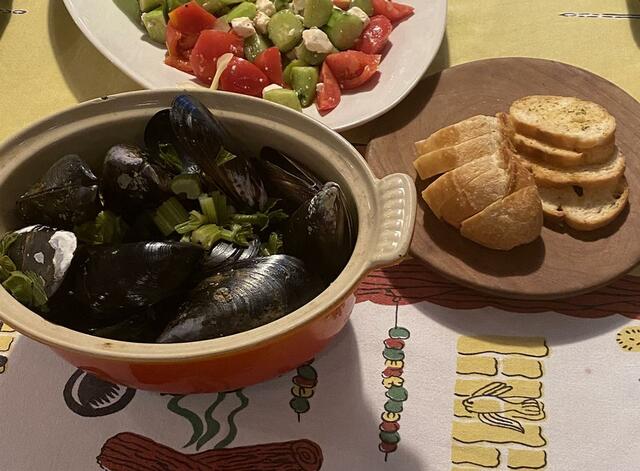 鈴木水産でムール貝を売っていたので、迷わず今夜はMoules marinieres(ムール貝のワイン蒸し)。洗うのが大変だけれど、調理は簡単。そして美味しい。