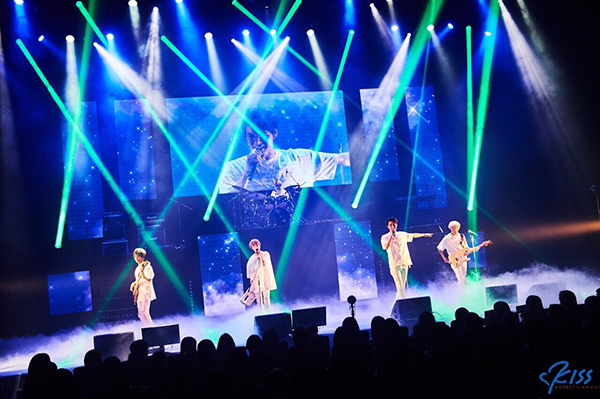 また「ファンの皆さんに贈るコメントを準備してきました」とレイブンが語ると、突然、会場にピアノのBGMが流れて暗転、ピンスポットに照らされる。「僕の目の前にいる皆さんは、とても美しいです。一生、僕と一緒にいてください。愛してます❤」とファンへ熱烈告白。会場は、いきなりの愛情表現に大喜びするファンと満足げなレイブンを残りのメンバー10人が生温かい目で見守る、というなんとも不思議な雰囲気に包まれたのだった。