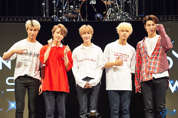 この日は記者会見も行われた。デビュー前グループとしては異例の5000通の応募の中から抽選で選ばれたファンの前で公演した彼ら。ONEUS+ONEWEとして初めて単独ステージでパフォーマンスを行うということもあって、緊張した面持ちで登壇。