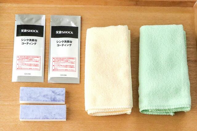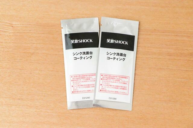 コーティング剤は2包入っていて、シンクはもちろん洗面台にも使用可能。
