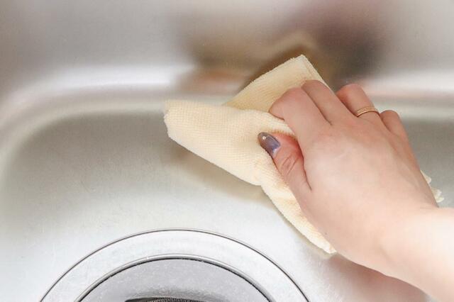 シンクを洗い終わったら、キレイに水分を拭き取りましょう。
