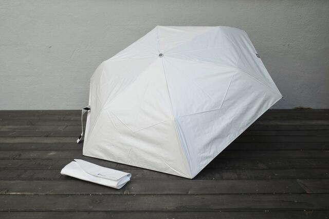 傘の生地に採用されているRadi-Cool(ラディクール)は、太陽光を反射しつつ、熱だけを宇宙空間に逃がす“放射冷却”の原理を応用した素材で、宇宙事業にも活用されている技術なんだとか。