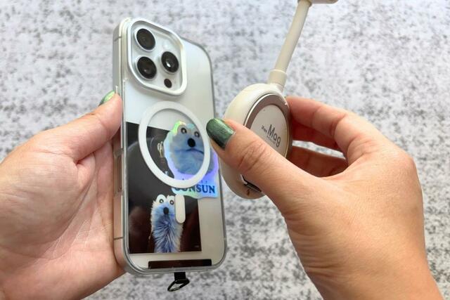 MagSafe対応のiPhoneなら、背面にパチッと貼り付けるだけで装着完了です。