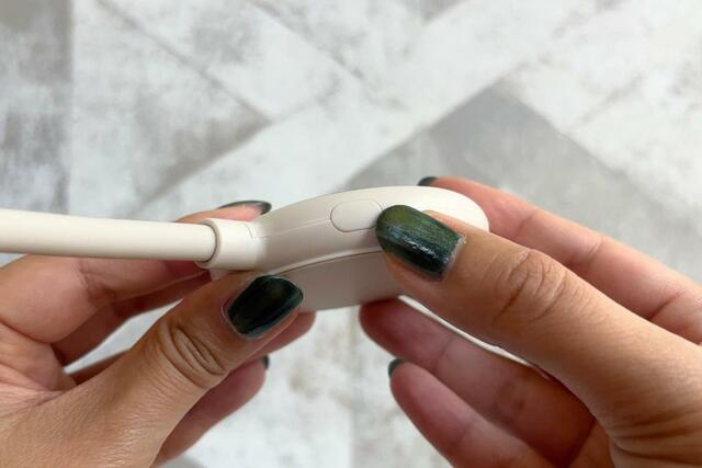 ボタンはひとつだけしかなく、長押しで電源のオンオフ、短押しで風量調節ができます。風量は強・中・弱の3段階に調整可能なので、自分の好みやシーンに合わせて調整できるのが使いやすいです。