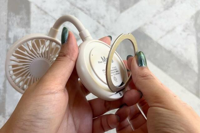 意外と便利だったのが、ファン下部にさりげなく内臓されたスマホリングです。