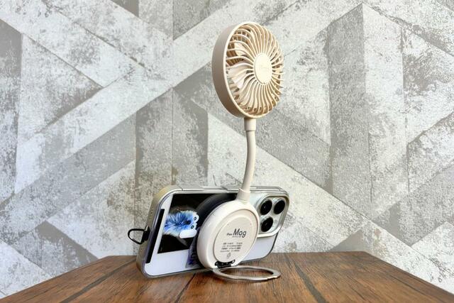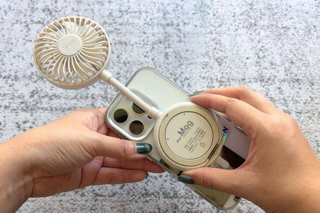 「iFan Mag25(アイファンマグ)」は、スマホとハンディファンを“片手で”使えるようにしたハンディファンです。