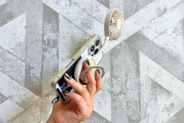 あぁ〜、スマホとハンディファン、まとめて片手で持てたらいいのに!