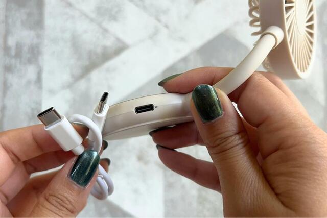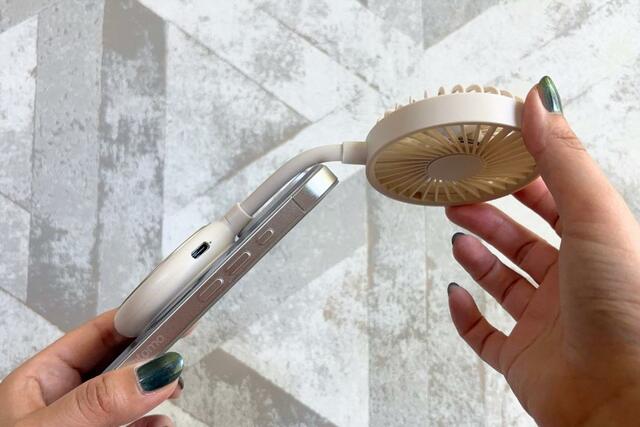 写真を撮ったり飲み物を手に取ったりするときに、いちいち持ち変える必要がないので助かります。普段通りにスマホを使いながら、顔まわりに涼しい風を当てられるのがこんなに快適だなんて…!
