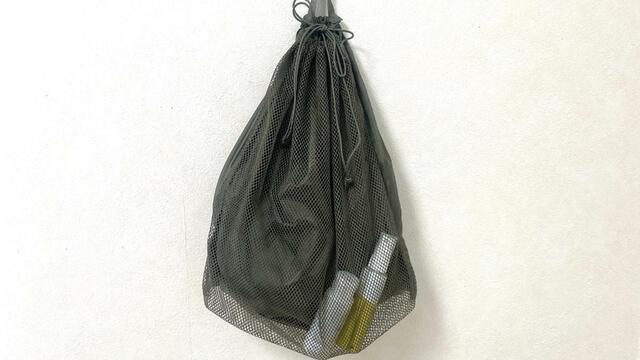 無印良品の「ポリエステルメッシュ巾着 ダブルタイプ」は、荷物の仕分けに便利な巾着。