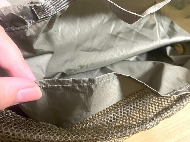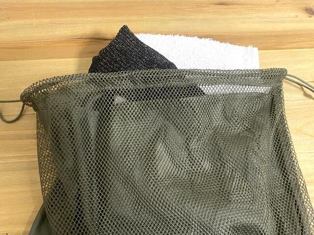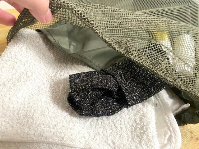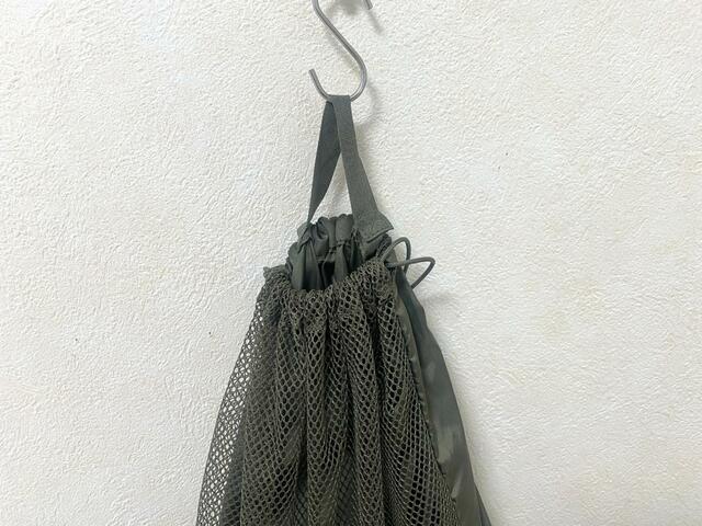 透け感のあるメッシュ側と、目隠しになる布側に分かれているので、入れるものに合わせて仕分けができます。