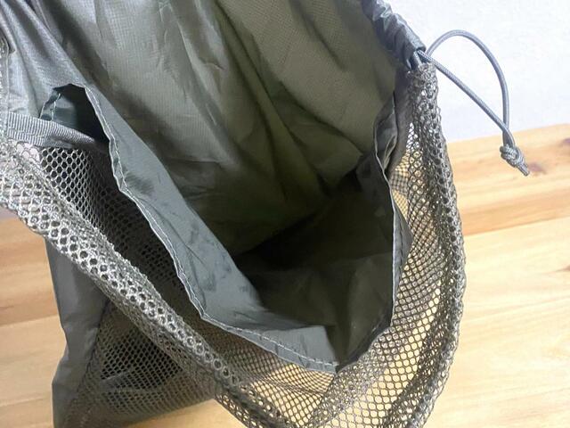 この巾着はポリエステル素材で、とにかく軽いのが特長。