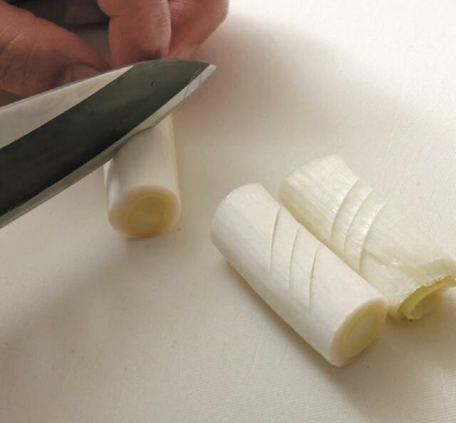 ※長ねぎは切り目を入れるひと手間で、食べたときに簡単に噛み切ることができます。