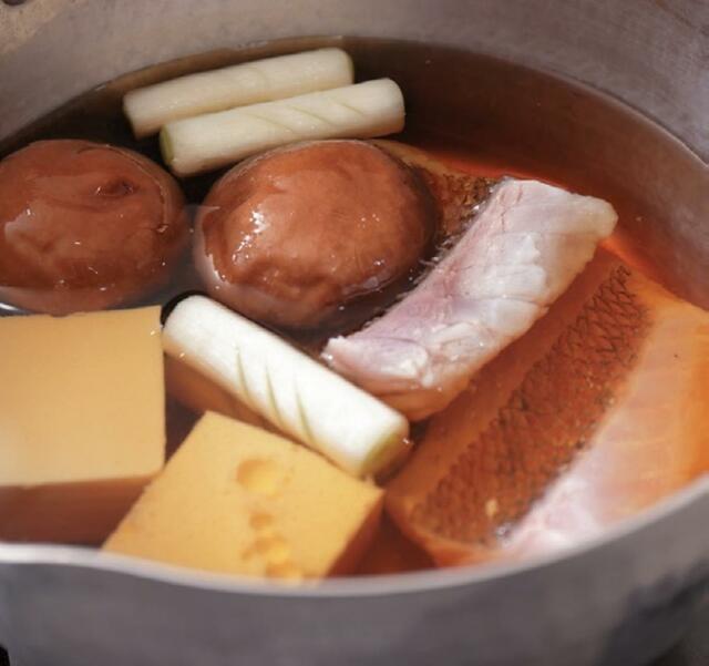 ふわふわに煮上がった鯛はもちろんですが、一緒に煮た野菜や豆腐の旨みが溶け込んだ、透き通ったスープがまた絶品。