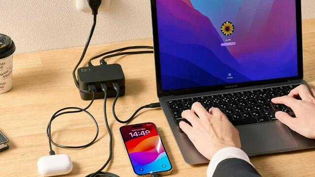 ACコンセント×2・USB-Type Cポート×2・USB-Type Aポート×1を搭載してるので、電源コンセントが1つあれば5つの機器に同時充電(給電)できるんです。