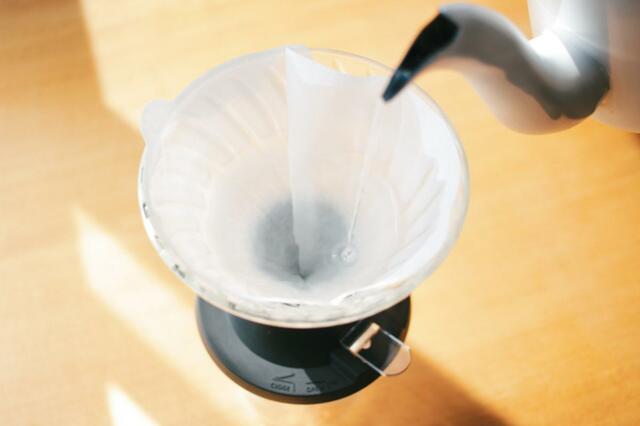 ドリッパーが温まったらお湯を捨て、コーヒー粉を準備します。
