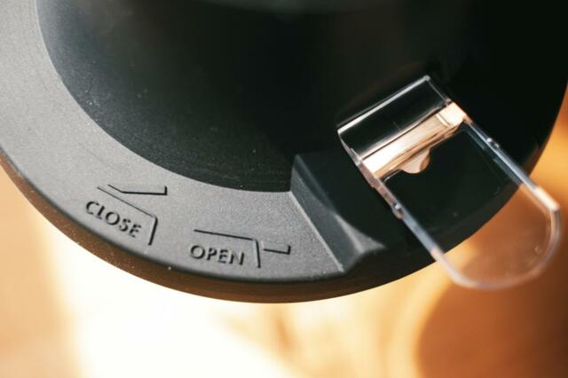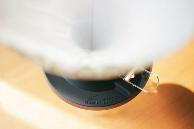 樹脂製のスイッチはホルダー上部の球体と連動しており、スイッチを上げることでドリッパーの抽出口を密閉してくれます。