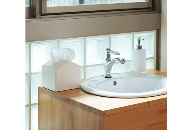 無駄のないコンパクトなデザインながら、可愛らしい「おうち」の形をした「Moi コンパクトティッシュケース」は、ホワイトとライトグレーの2色展開。
