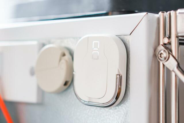 非常にスリム&コンパクトなつくりで、使わないときにデスクの上にあっても邪魔になりません。磁石がくっつく場所があればこんなふうに浮かせる収納もできちゃいます。