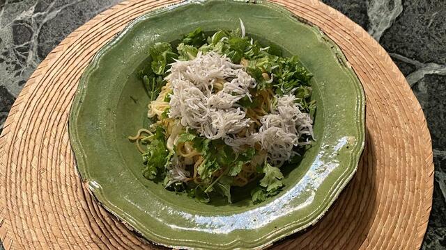 暑い日でした。電車で大森まで行って帰ってきただけなのに、どんより疲れました。プチ熱中症かも。しらすとパクチーの焼きそばを作った。あらま、この組み合わせ、美味しいわ。