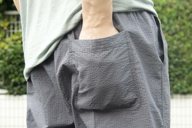 無印良品のパジャマ、ルームウェアは極端にポケットが浅いものもあるのですがこちらの「サッカー織ショートパンツ」には、ちゃんと深めの実用的なポケットがついていて便利です。