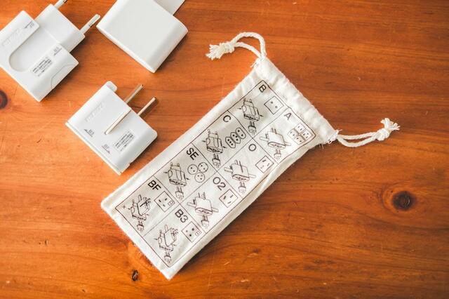 その点、無印良品のトラベル用変換プラグアダプターには付属の収納袋に対応する形が図解されているため、そういったストレスも解消。