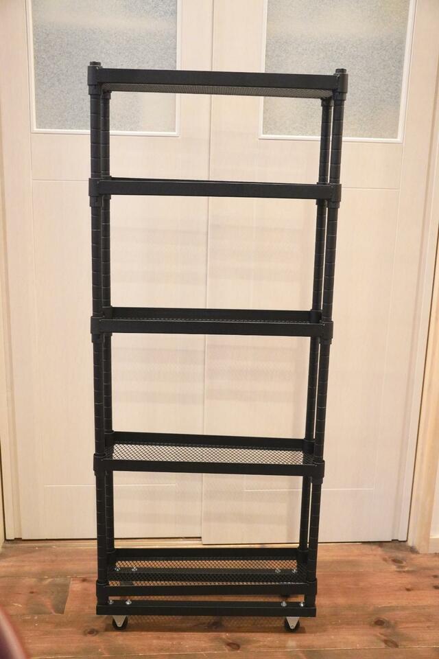 ストックの数もひと目で確認できるので、「あと何本あったっけ?」と数える必要がなくなり、無駄な買い物も減りました。キャスターが付いているので移動もラクだし、何よりスペースをうまく使えて助かっています。
