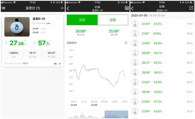 従来の温度計の場合、気温を確認するのを忘れたりメモをとるのが手間でしたが、これなら確実にデータを収集できますね。
