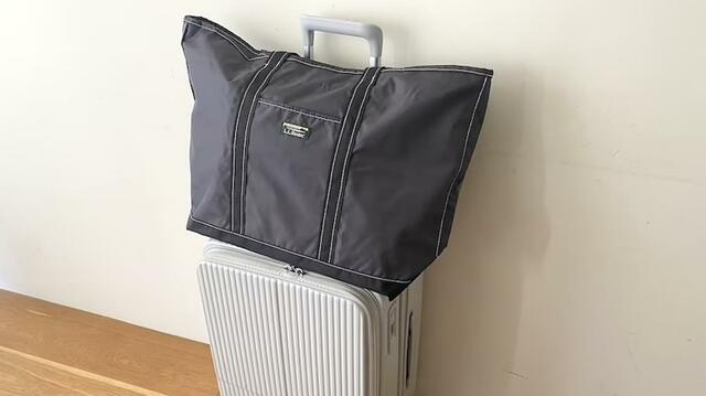 マチ付きで底が平らになるため、スーツケースの上に置いても安定します。