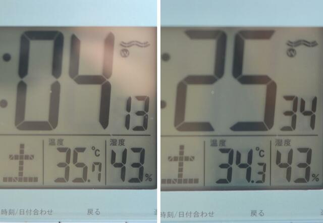 他の日や時間帯でも何度か測ってみましたが、いずれも1.5℃前後の差がつきました。