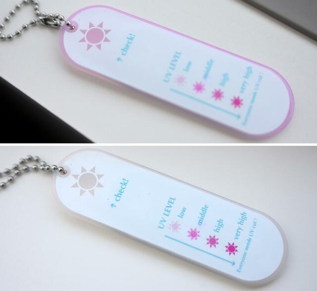 紫外線に反応して赤くなるUVレベルチェックリップミラーを使用(※)