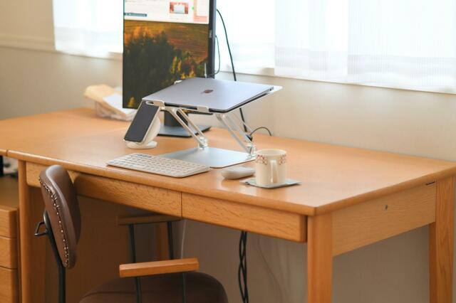 PCで作業をするうえでも、外からの光が柔らかくなって、より画面が見やすくなったのはうれしい誤算。