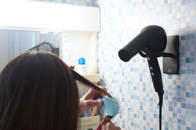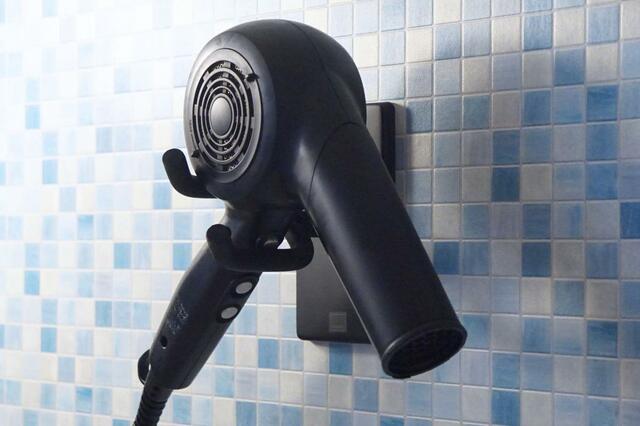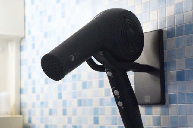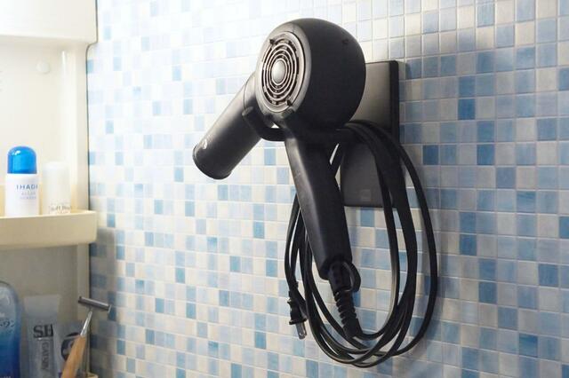 「ウォール角度調節ドライヤーホルダー」の設置後は、こんな感じで壁面にすっきりセット。