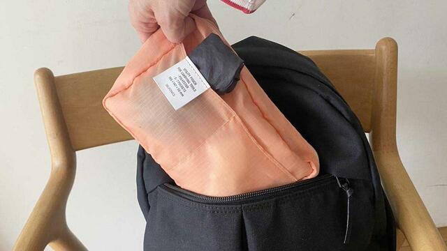 外側のポケットにはエコバッグとゴミ袋、背面のポケットにはポケットティッシュが入っています。