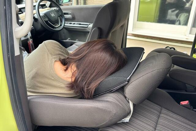 それが、枕として使うこと!ふと思い立ってドライブの休憩中に簡易枕として使ってみたのですが、これがまたけっこういい感じでした。