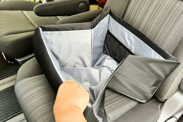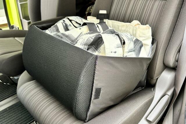 筆者は、「普段は自分が座るシートに挟んで腰クッションとして使用して、荷物が増えたら後部座席に挟み直して収納ボックスとして活用する」という使い方がお気に入り。好きなときに、好きな場所で、好きなように使える自由度の高さが本当に使いやすいです。