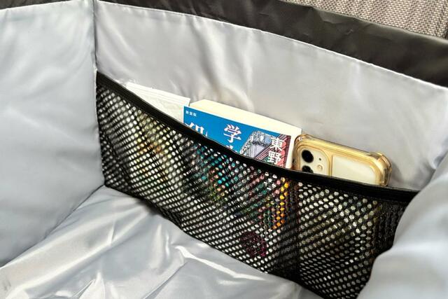 さらに、内側には小物収納に便利なメッシュのポケットも付いています。