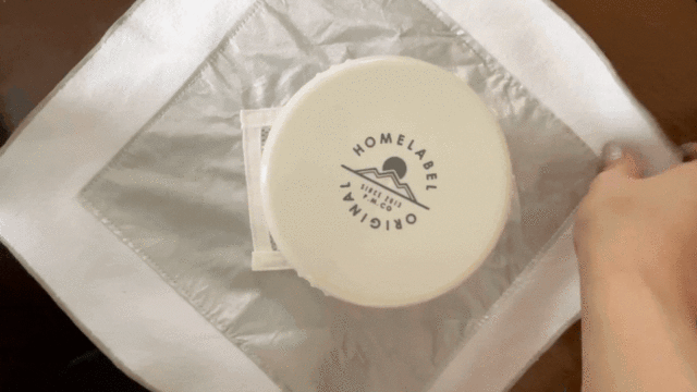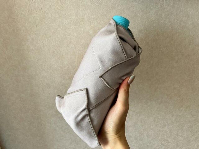 生地の表側と裏側がくっつくので、巻くだけでカンタンに600mlのペットボトルを包みこめました。