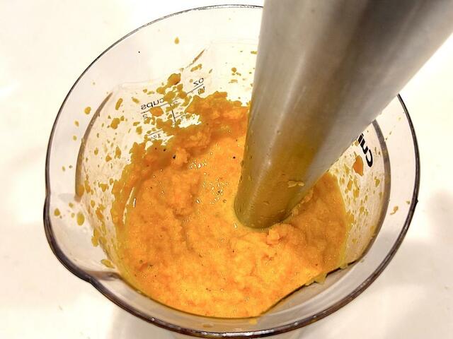 手順2でブレンダーが回しにくい場合は、酢とオイルを少しずつ足しながらなめらかにしてください。