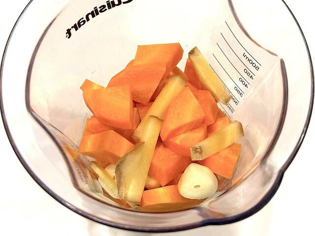 1. 人参を粉砕しやすい適当な大きさにカットする。