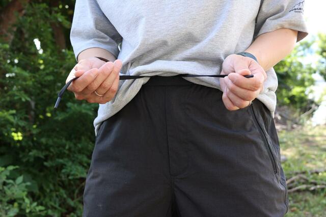 公式にもある通り、ウエストに内蔵されたコードは、外側に出してカジュアルな印象にしたり、内側にしまってよりスマートな着こなしにしたりと、気分やシーンに合わせてアレンジが可能です。