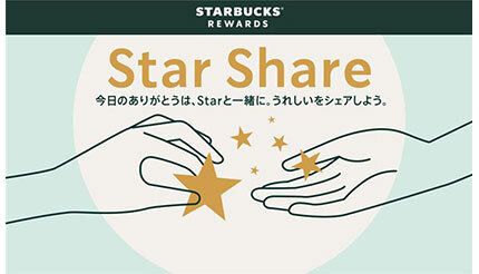 今回、開始されたStar Shareは、大切な人に日頃の感謝や想いをStarとともにシェアできるスターバックス リワードの新機能。スターバックス リワードのGold会員は、たまったStarを他のスターバックス リワード会員に送れる。