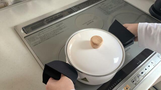 最近お気に入りの、持ち手が熱くなってしまうホーロー鍋も、この鍋つかみがあれば大丈夫。