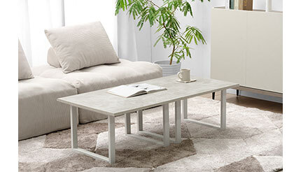 本体は、おしゃれで上品なモルタル調天板に耐久性に優れたメラミン、モダンな雰囲気のスチール脚を採用しており、メラミン天板は傷がつきにくく汚れてもさっと拭き取れるため、手入れがしやすく長期間にわたって使用できる。また、天板カラーに合わせたスチール脚はスタイリッシュな印象で、強度に優れている。