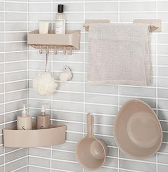 バス用品の「浴室マグネットシリーズ」は、好きな場所に磁石でくっつけられるのが◎。浴室掃除の道具や、小物を置けるラックはもちろん、手おけや洗面器まで壁にくっつきます。