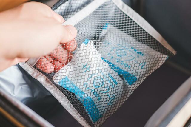 本体には、保冷効果を高める断熱材を内蔵。また内側に保冷剤を入れられるメッシュポケットも付いています。