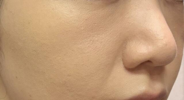 単独ではカバー効果はありませんが、ベースメイクを重ねると同じアイテムでも毛穴が目立たないと実感。この時点で下地の力を感じられます。