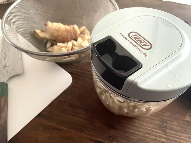 スライスで作るレシピもあるみたいなので、間をとってみじん切りで作ることに。ここで登場したのが、以前レビューしたToffyの「マルチハンディチョッパー」です。